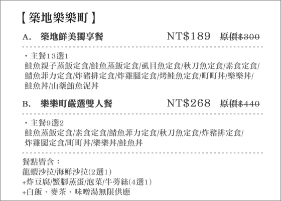 也許聽【築地樂樂町】你還有點陌生,但是絕對有在「食尚玩家」上看見主持人大啖美味的干貝,那可口到驚呼連連的片段。在【築地樂樂町】,每道料理皆是精緻製作,每口漁鮮皆是新鮮現流,價格平價親民,卻又能享受到高級的食材美味,這樣的好康到哪裡找啊!